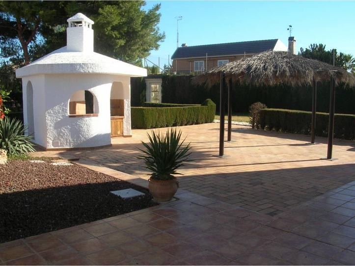 Chalet en una zona tranquila y a 10 minutos de la playa con una superficie de 210 m², útil 180 m², 2800 m² solar, 3 habitaciones ( 1 suite, 2 individuales), 2 baños, cocina, lavadero, comedor, terraza, suelos terrazo y mármol, jardín, garaje, armarios, muebles, puerta blindada, año construcción 1985, agua, luz, chimenea, carpintería exterior madera, carpintería interior madera, aire acondicionado, orientación todas, soleado, piscina, alarma. Alumbrado, asfaltado, urbanizado.